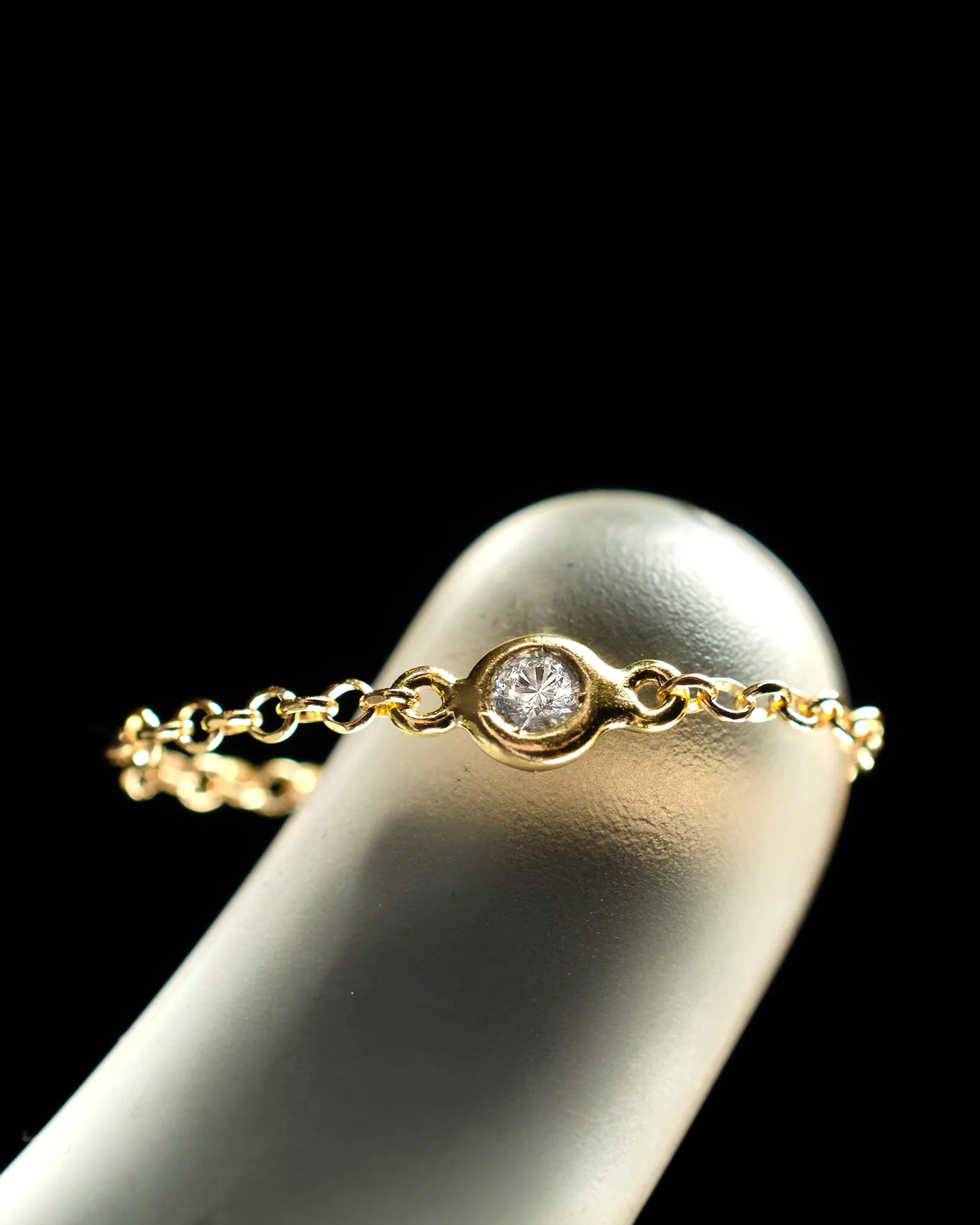 Anel em ouro 18k, com um diamante natural e aro de corrente elo portugues