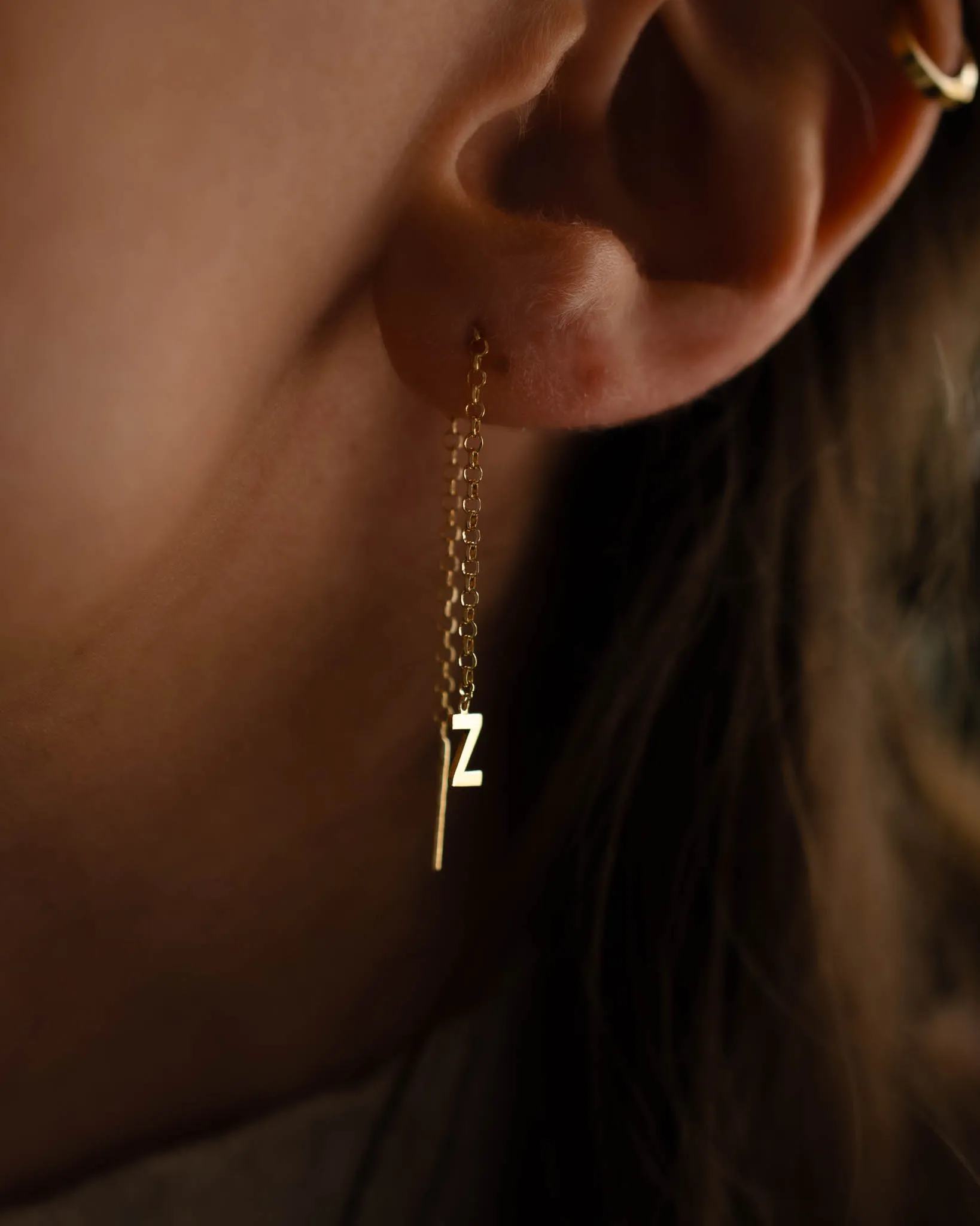 Brinco em ouro 18k com letra personalizável e corrente elo português.