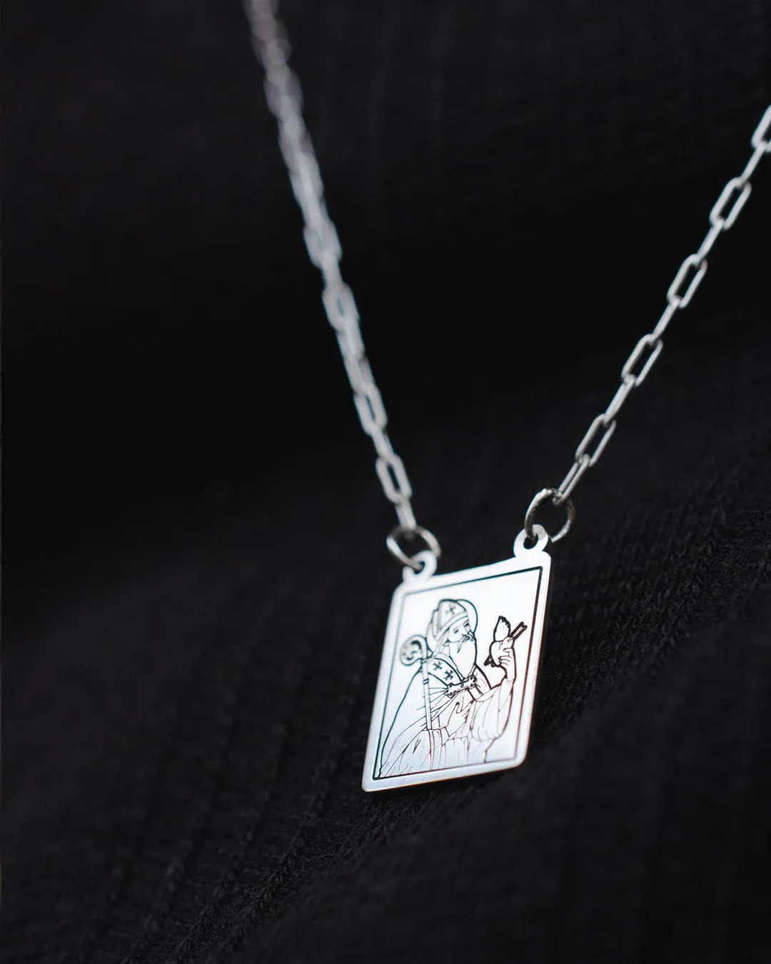 Criado em colaboração com quem vai usá-lo, esse escapulário carrega o que é essencial — em forma, traço e significado.