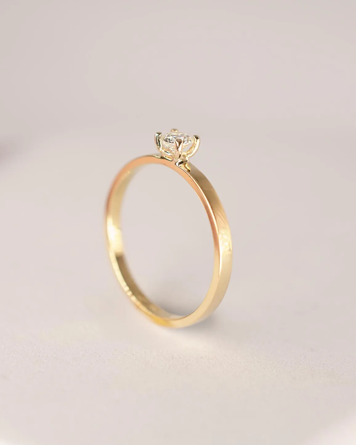 Solitário de aro reto em ouro amarelo 18k com diamante de 18pts (3.5mm).