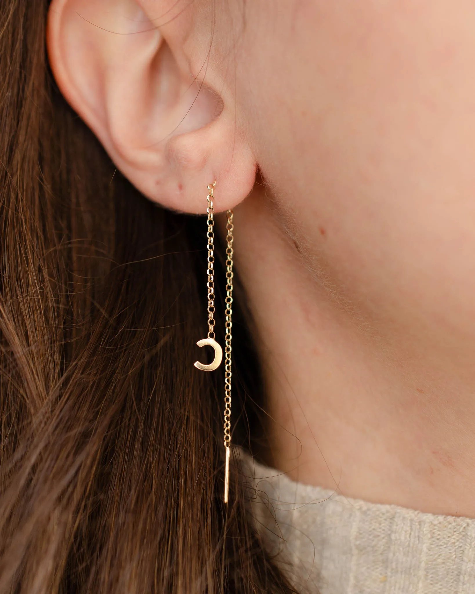 Nossos brincos de corrente são super leves e ótimos para o dia a dia, podem ser usados conforme a sua preferência: no primeiro furo como um pêndulo ou costurando os segundos e terceiros furos.